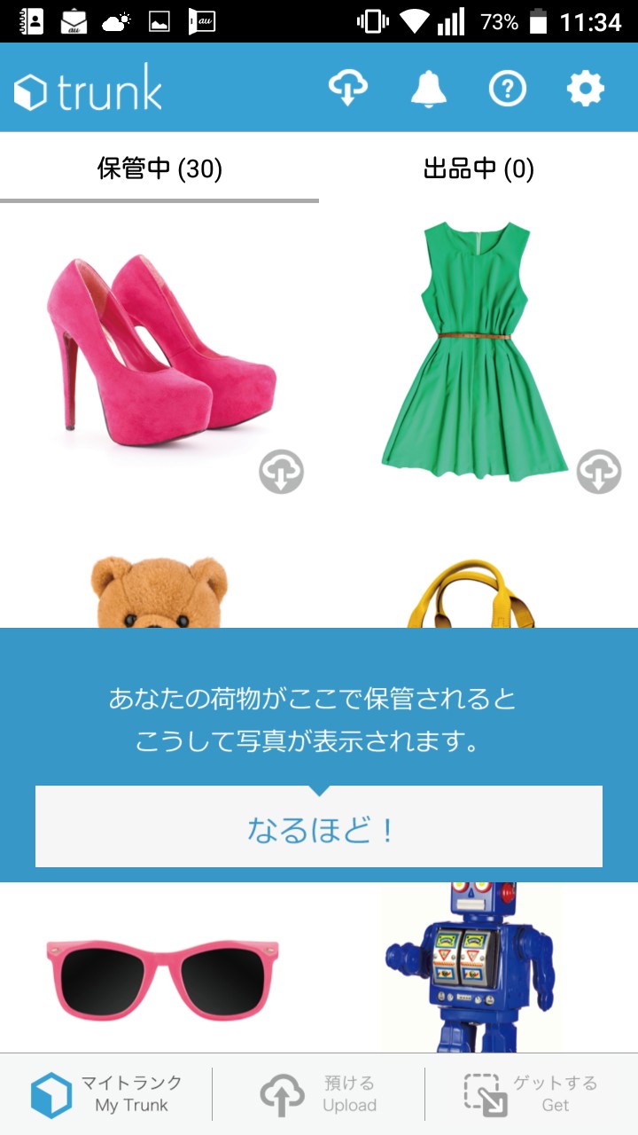 ボックスがセンターに到着すると、アプリの「マイトランク」タブから保管している荷物をいつでも写真で確認できます。