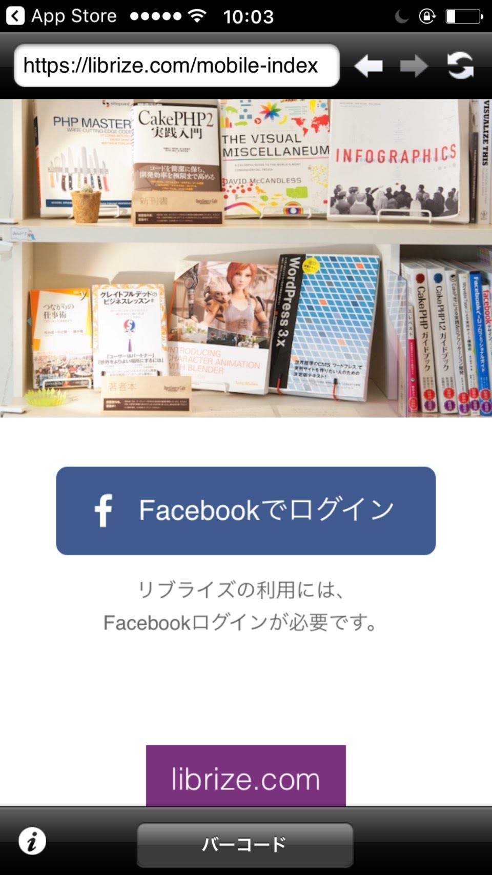 本アプリのサーチ画面から「リブライズ」のサイトを開き、ユーザー登録後「ブックポストの作成」をしてアプリの「バーコードカメラ」で読み取り、登録をしていくだけで図書館の登録ができます。