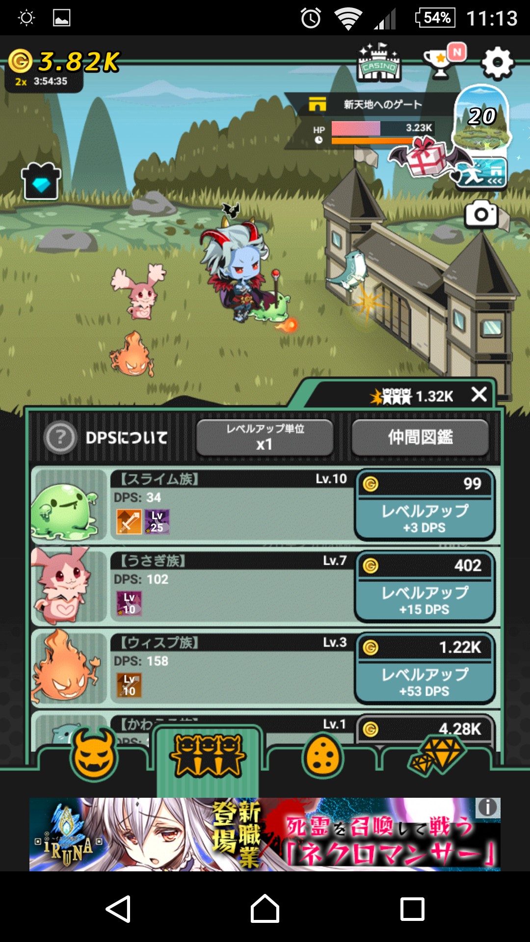 画面左下にある魔王マークをタップして、地道に魔王さまを強くしてあげましょう。