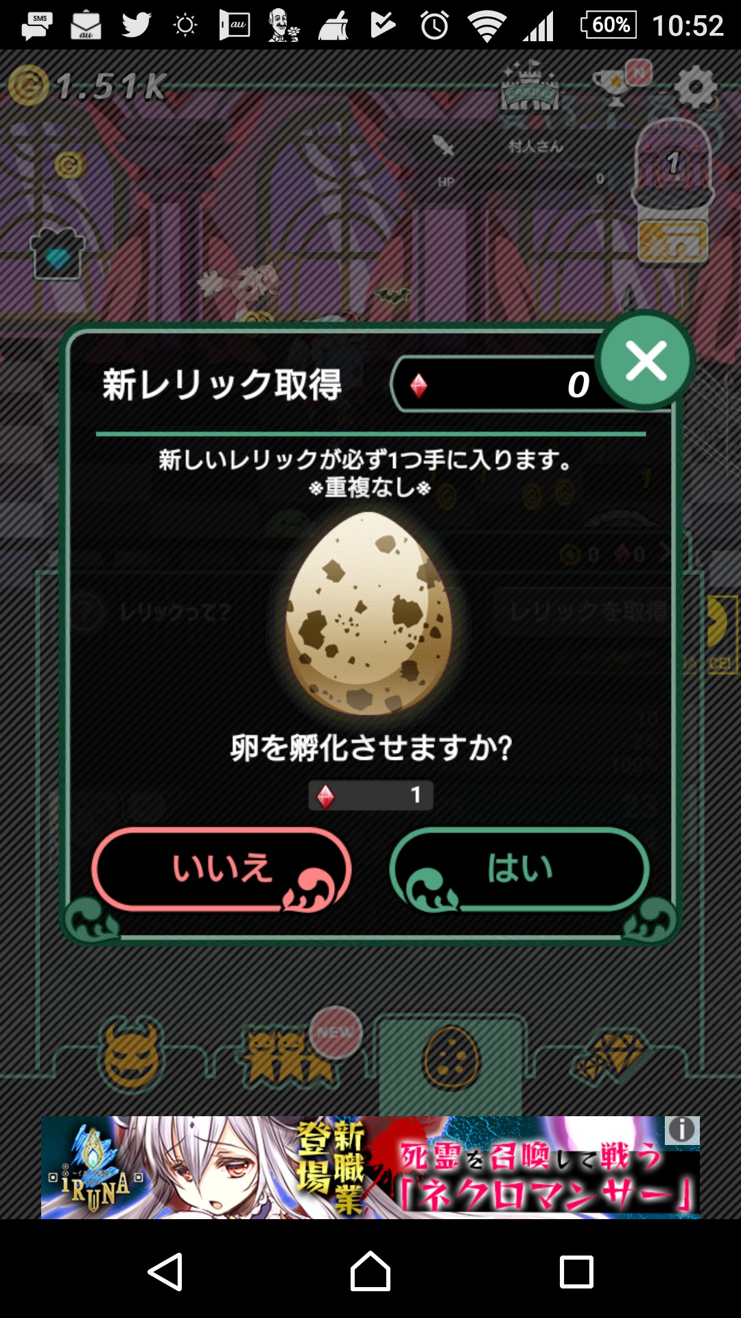 もしもタップして魔王さまも参戦しても「くっ…これは勝てない…」と思ったら、さっさと一旦撤退して、レリックや装備を変えて再挑戦してみましょう。