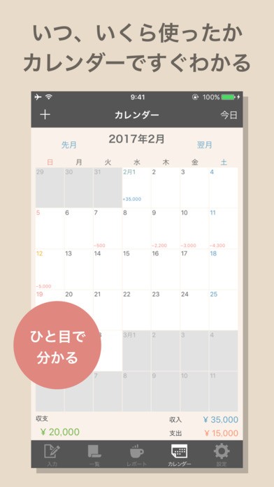 カレンダーでいくら使ったかすぐに分かる