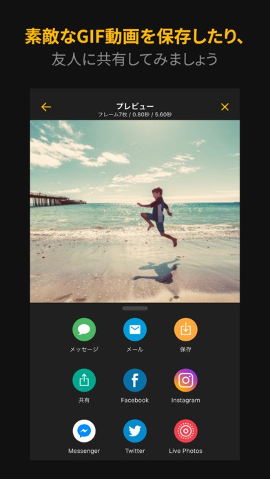 各種iPhone/iPad向けに配信されている編集アプリです。保存されている画像や写真を組み合わせたり、撮影した動画の再生位置を調整して面白いGIFアニメ動画を簡単に作れます。
