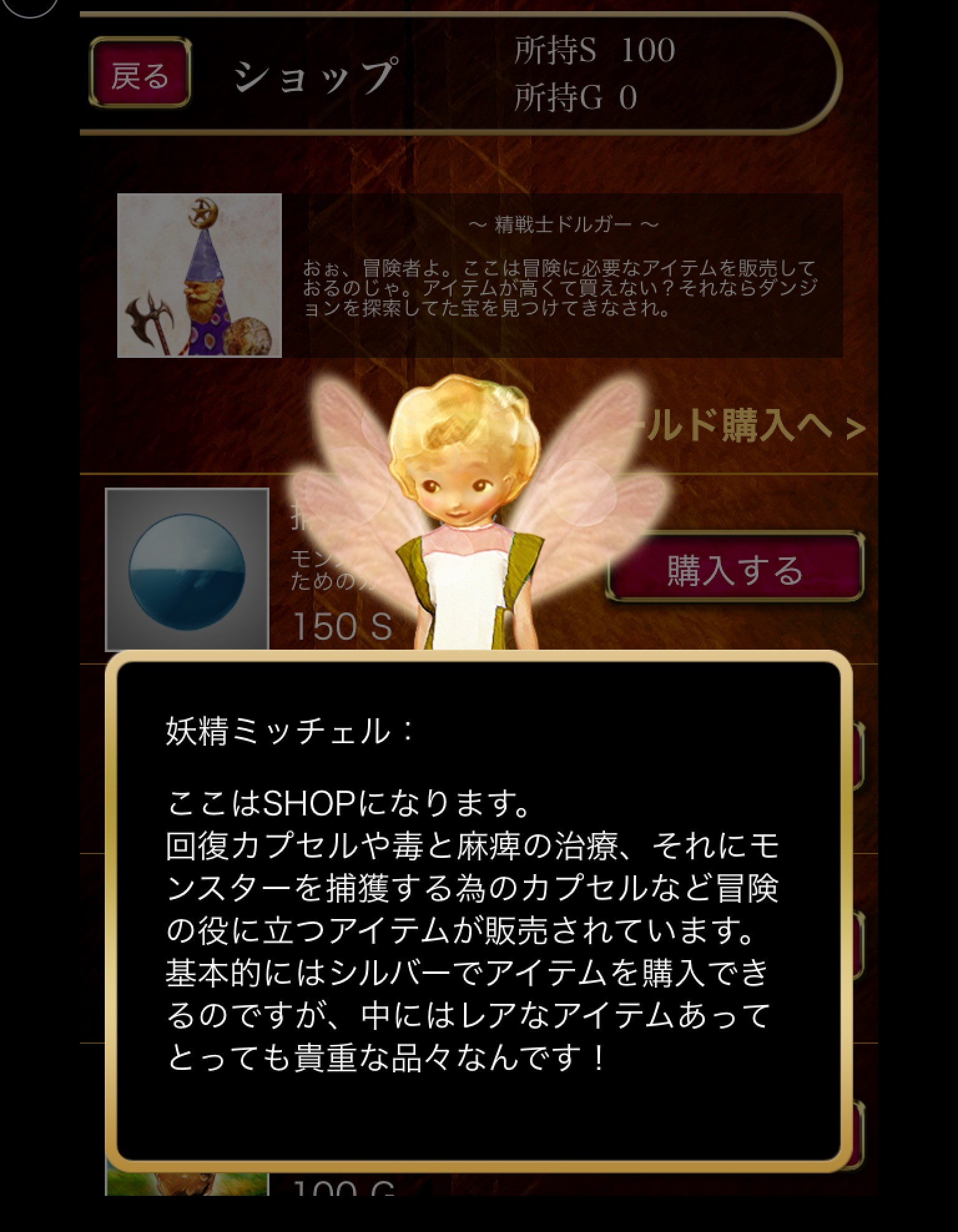 回復アイテムやモンスターを捕獲するためのカプセルを購入することができます。今作での通貨はシルバーとゴールドの2種類があります。ゲーム内で入手できるのがシルバー(S)で購入すると手に入れられるゴールド(G)があります。ゴールドの通貨でしか買えないアイテムもあるようです。