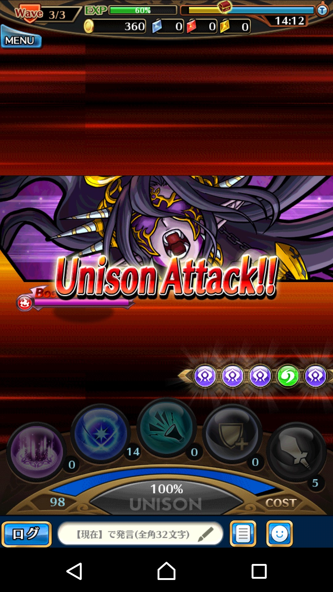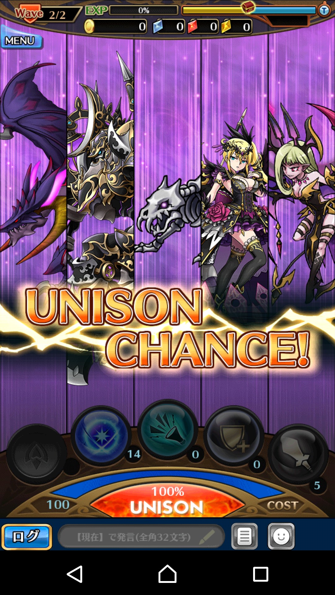 これがマックスになった状態でユニゾンボタンをタップするとアイコンが表示され、それをタップすると強力な攻撃が発動しますよ!