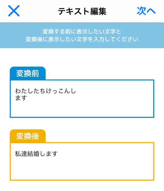 全部入力が終わると「私達結婚します」と変換後の文字へと変化します。