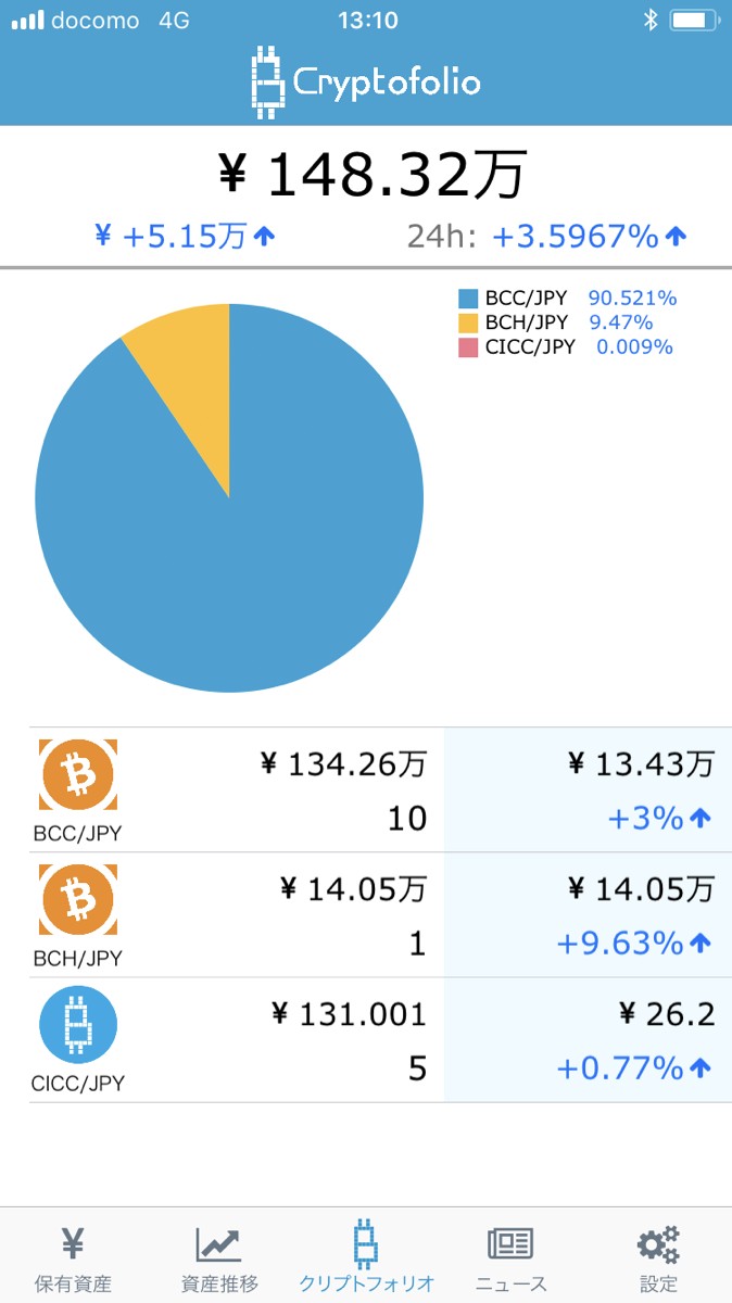- 自分の総資産が一目で分かるアプリ「Cryptofolio(クリプトフォリオ)」