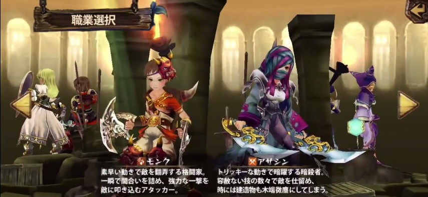 そして、自分のキャラは1つのアカウントにつき9体まで作成可能で、職業も上位職まで含めるとかなり多彩かつ個性豊か。もちろん、それぞれの職業が持つ役割も異なるので、スマホRPGでありがちな、皆同じキャラ・同じ性能などということが起こりづらく、ユーザーのオリジナリティを損なわないような配慮がされています。