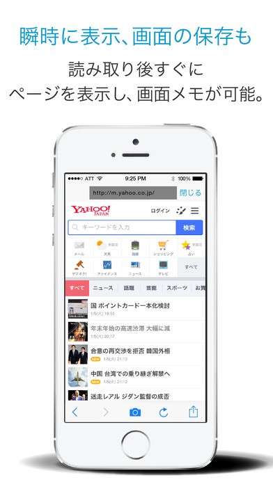 表示したページのスクリーンショットや画面メモなどが簡単に出来ます。保存が出来るという事です。スクリーンショットはカメラマークをタップするだけでアルバムに保存してくれます。普通にスクリーンショットをするのとは違いワンタップで音もしません。使う人の事を考えたアプリだと言えますね。