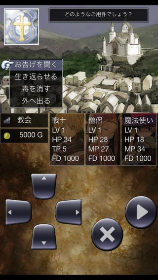 1からやり直しといったことはないのでご安心ください。ゲームを始めるとまずは3人のパーティーを編成することになります。選べる職業は戦士、僧侶、魔法使いとオーソドックスなもの。キャラグラフィックは固定で、