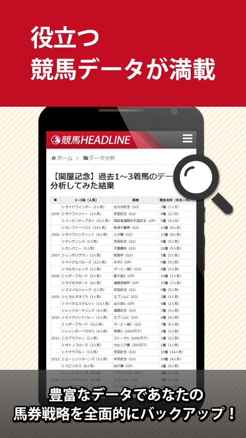 競馬好きの方はもちろん、競馬をこれから覚えたいという方必見の機能がこのアプリには付いています!このアプリは、競馬に役立つデータが満載なので、豊富なデータから、馬券戦略を全面的にバックアップしてくれます。馬券を買うのは初めて!という方も、この情報を見る事で馬券戦略することができ、スムーズに馬券選びをすることが出来ます!ある程度、データを分析しておくことで、競馬をもっと楽しむことができますよ。競馬初心者という方も、競馬好きの方も、このアプリを利用したら、こちらの競馬データもチェックしてみてください。きっと役に立つこと間違いありません!