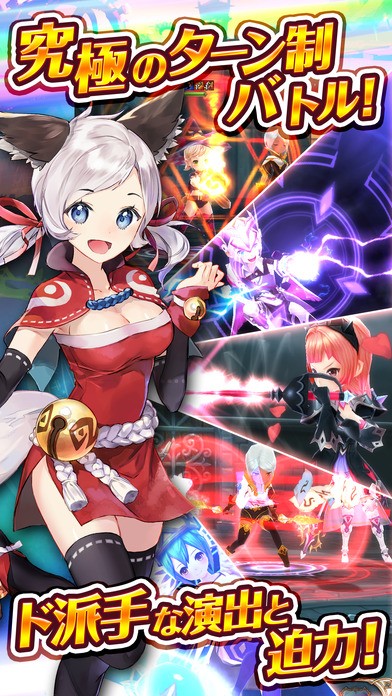 基本的な流れは他とあまり変わりがなく、キャラを強化してパーティーを編成しステージをクリアしていきます。バトルはコマンド選択式で通常攻撃・スキル・防御の中から適切な行動を選び、