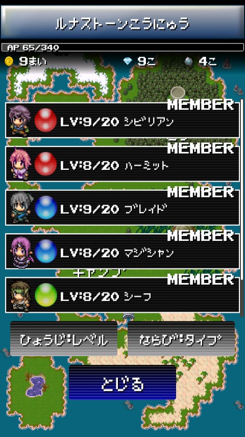 バトルに勝利するとお金をもらえます。これでキャラクターのレベルアップを行いましょう。それぞれキャラクターにはクラスが用意されていて、レベルが最大になることで上位の職へとクラスチェンジできます。
