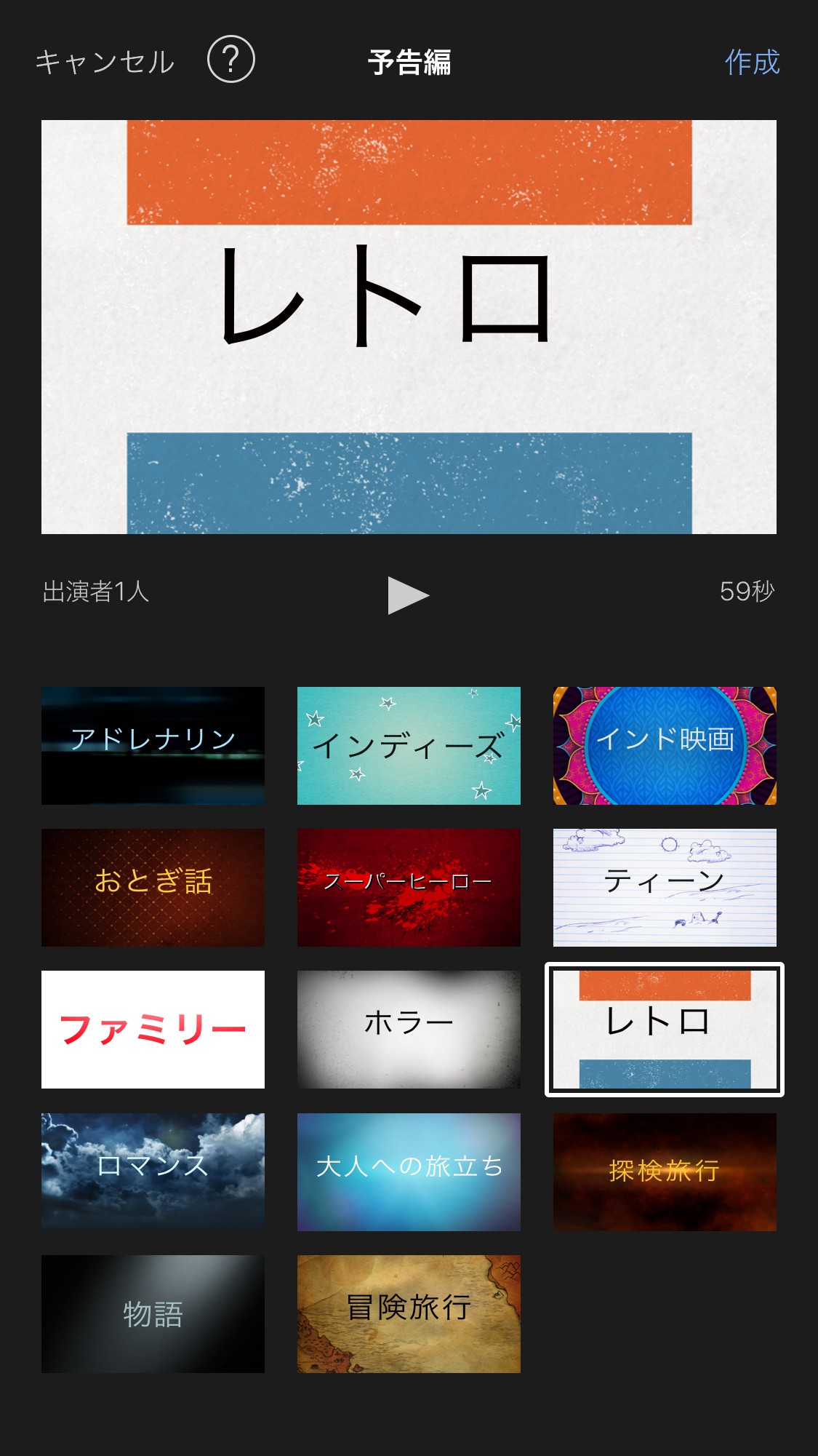 テンプレートでは映画の予告編のようなムービー作成が可能です。