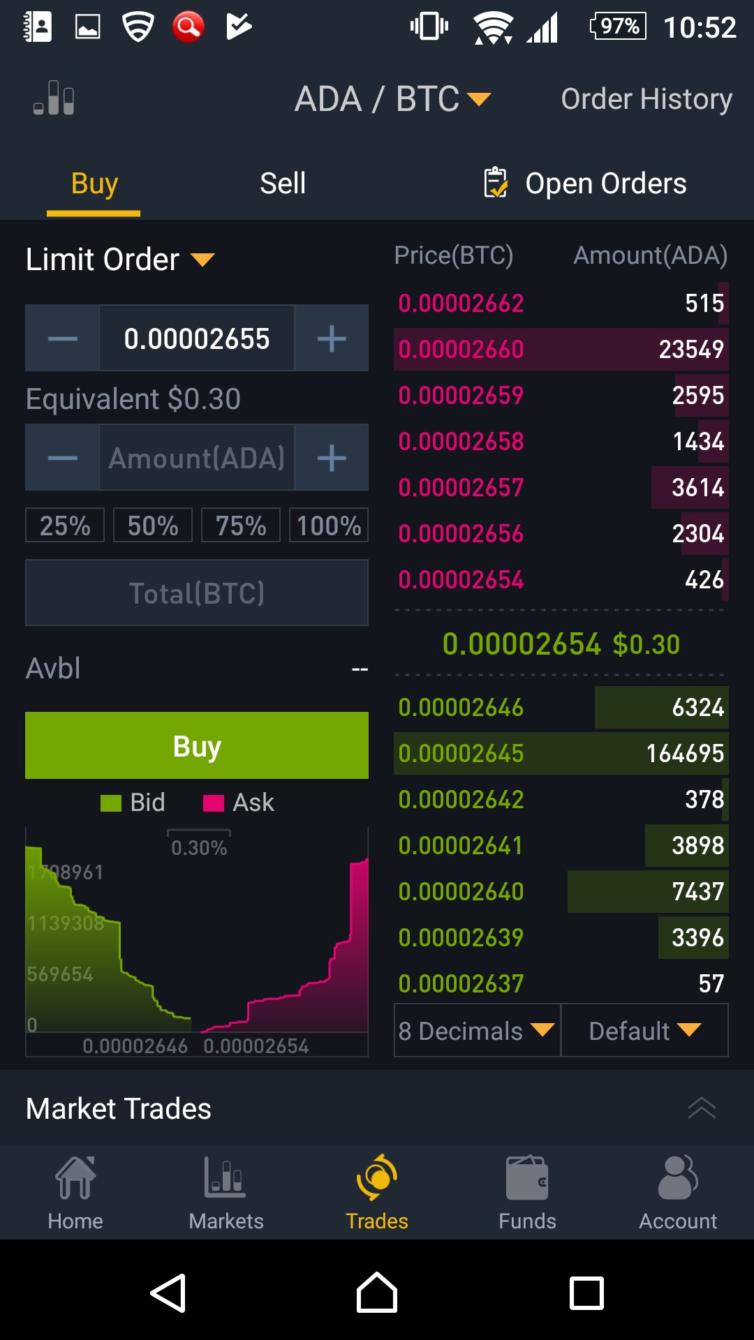 アプリ「H-Trader for HitBTC」でADA動向をチェック