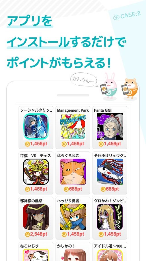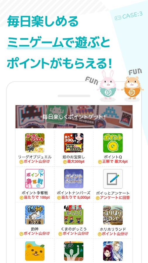 などなど、10種類以上ものコンテンツがあります。これを遊ぶだけで数ポイント~数百ポイント稼げます。ちまちまと遊んでいれば、すぐに2000ポイントくらいになっちゃいます。