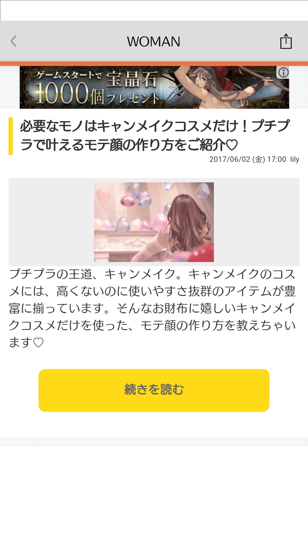 ニュース記事を開くと、記事の途中に「続きを読む」ボタンが出ています。「ここから有料になったりするんじゃないの?」とストップしてしまわないでください。