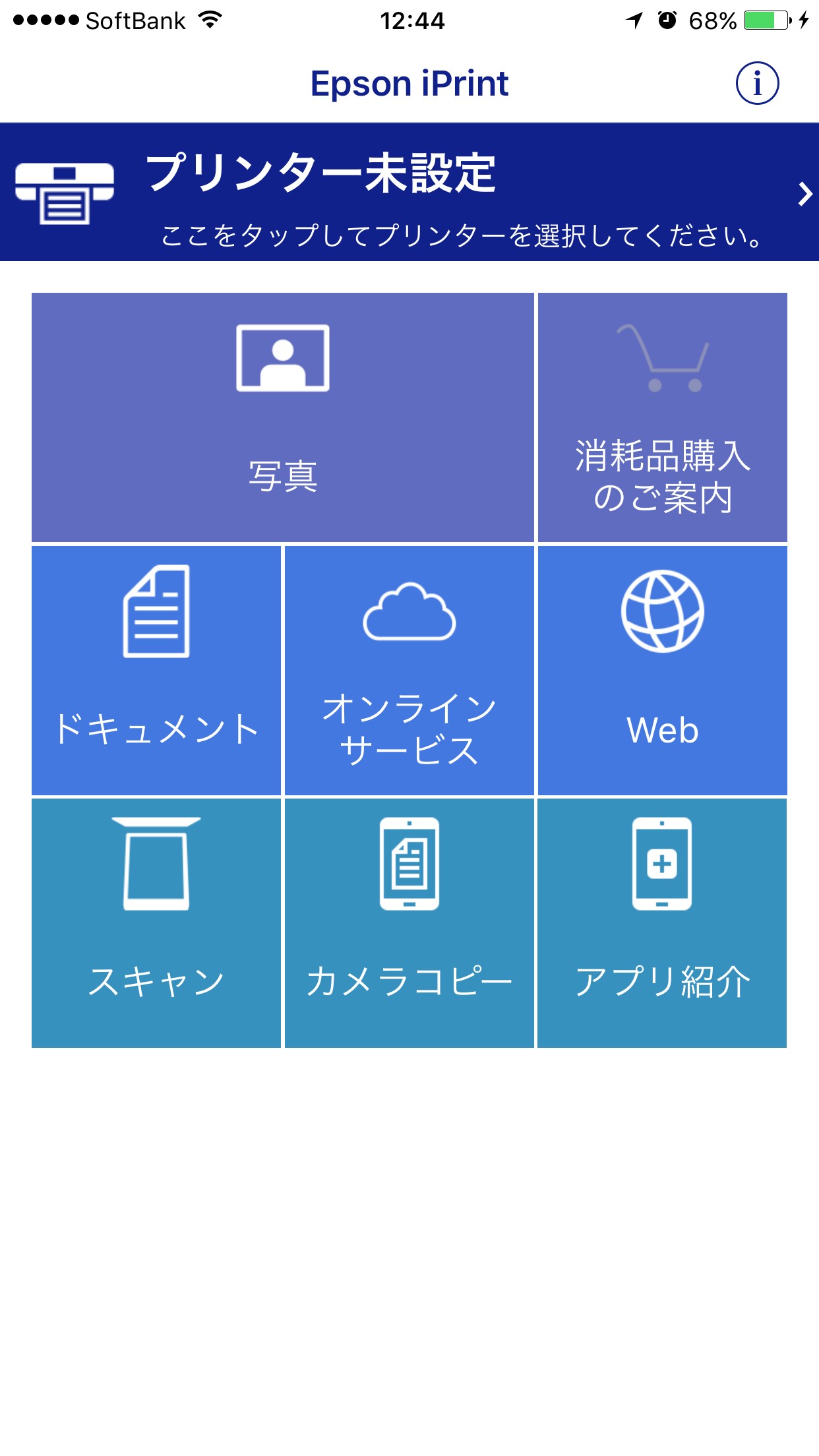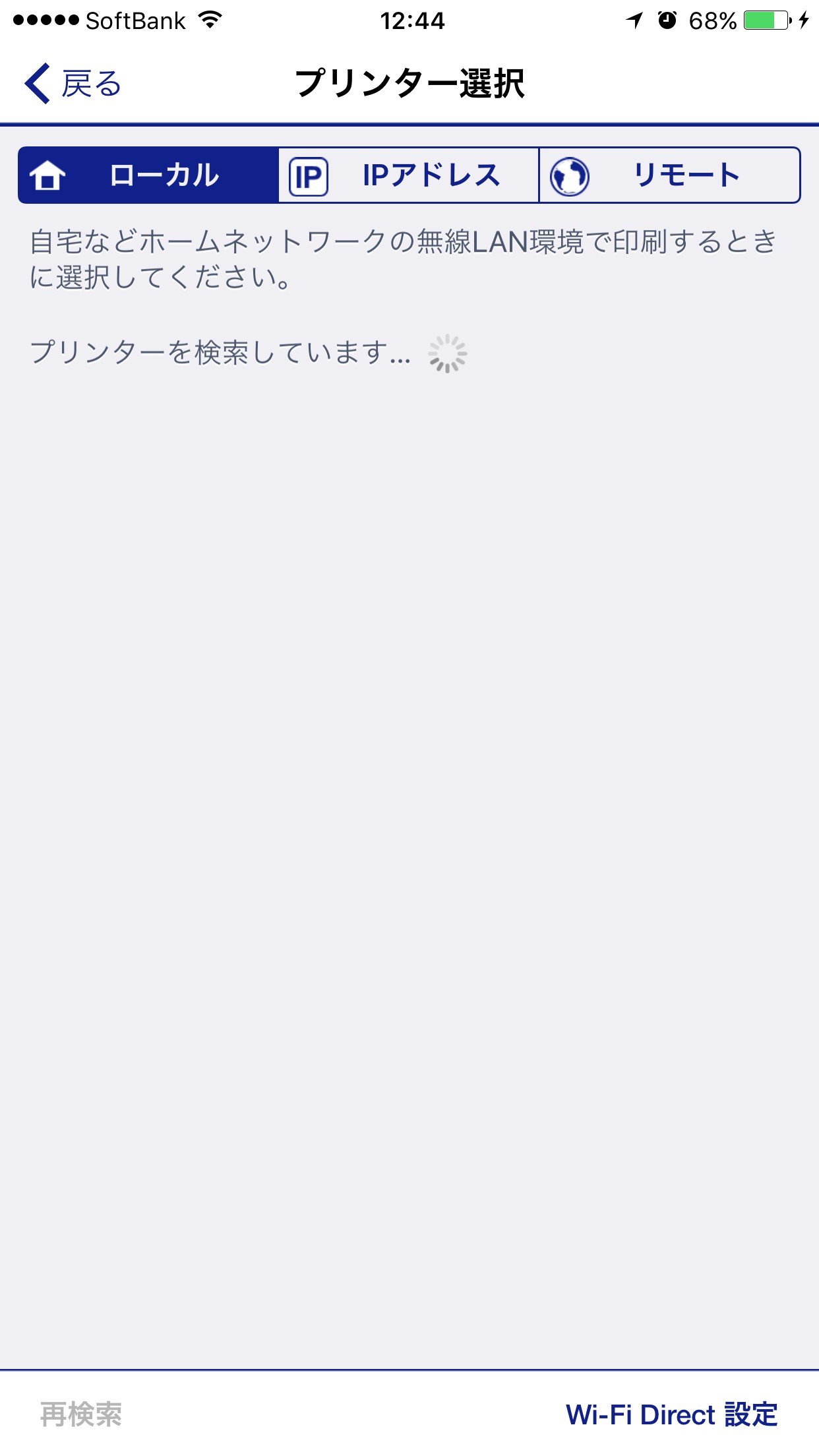 ホーム画面上の「プリンタ未設定」ボタンをタップすることで、利用するプリンタを登録します。