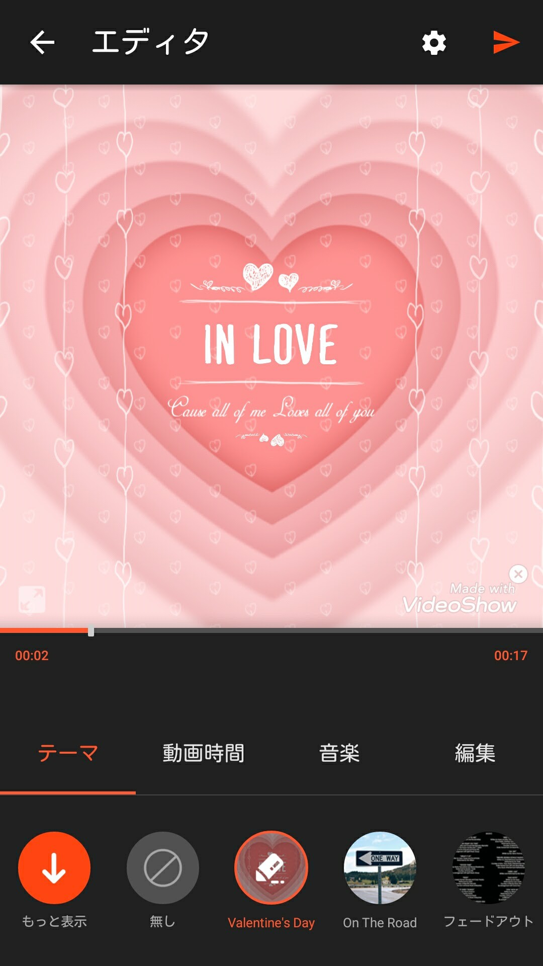 例えば、バレンタインがテーマ動画を編集するときは「Valentine’s Day」を利用することで