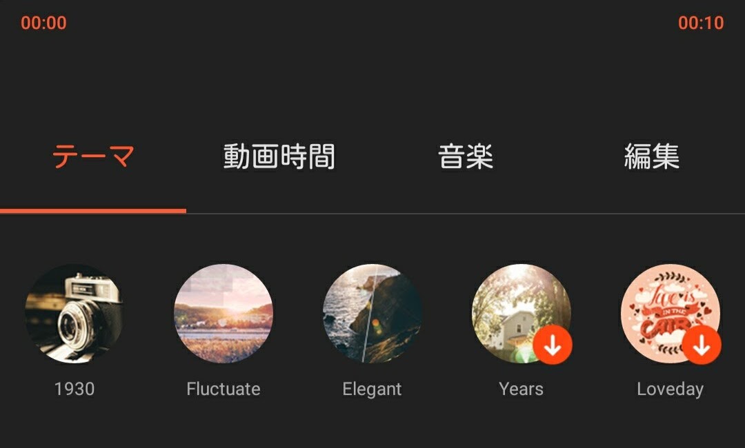 動画の内容に合わせて、用意されているテーマを選択しましょう。