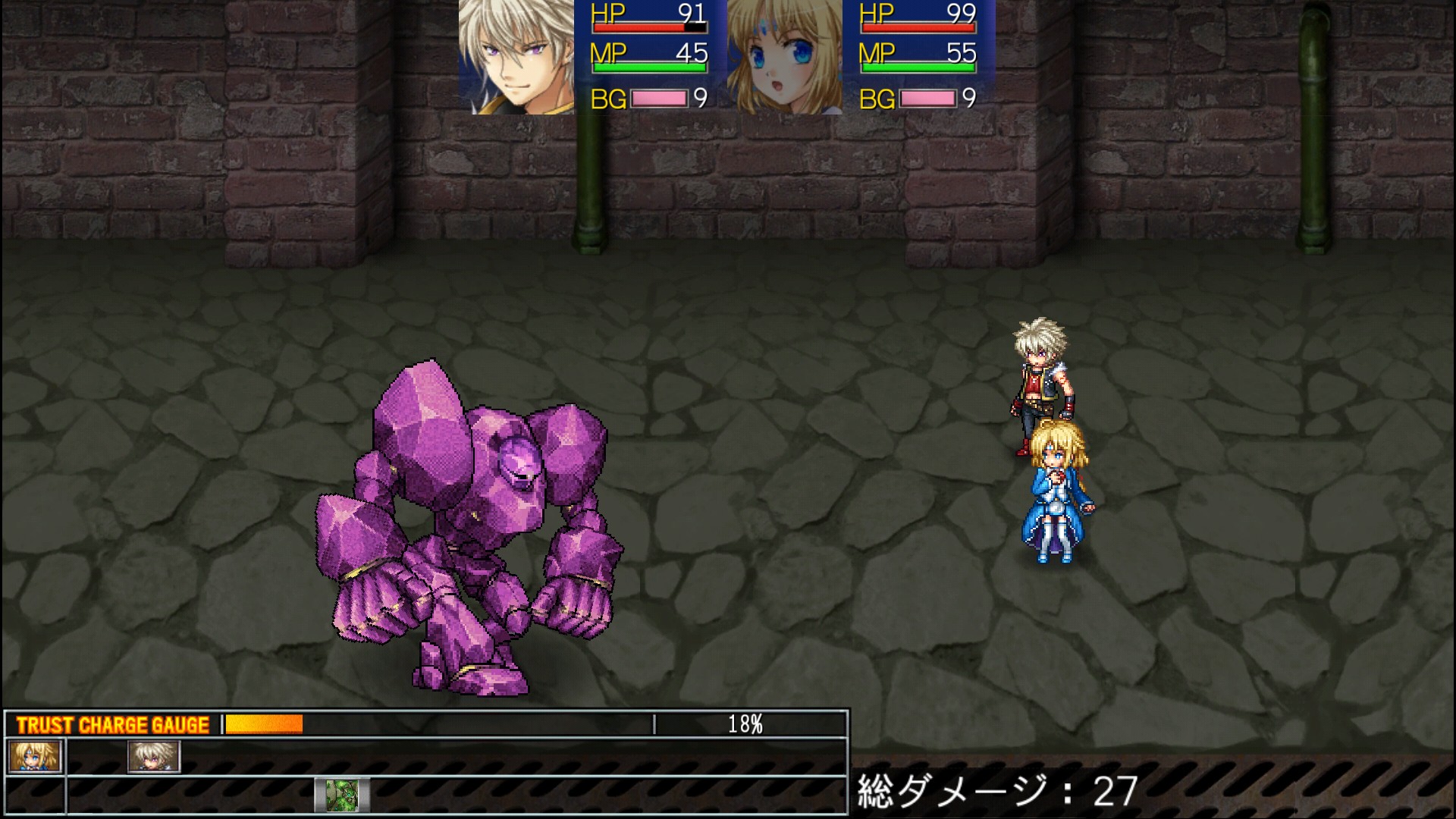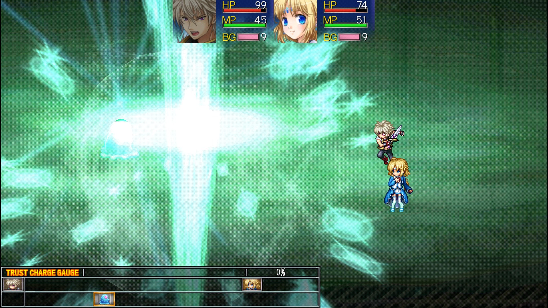 戦闘中の画面左下にあるトラストチャージゲージが100%の時に使用可能な「トラストチャージ」では、キャラクター固有の強力な必殺技を放つことができます。