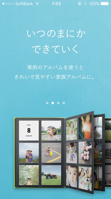 写真サイズに合わせた専用のアルバムがアプリを通じて販売されています。