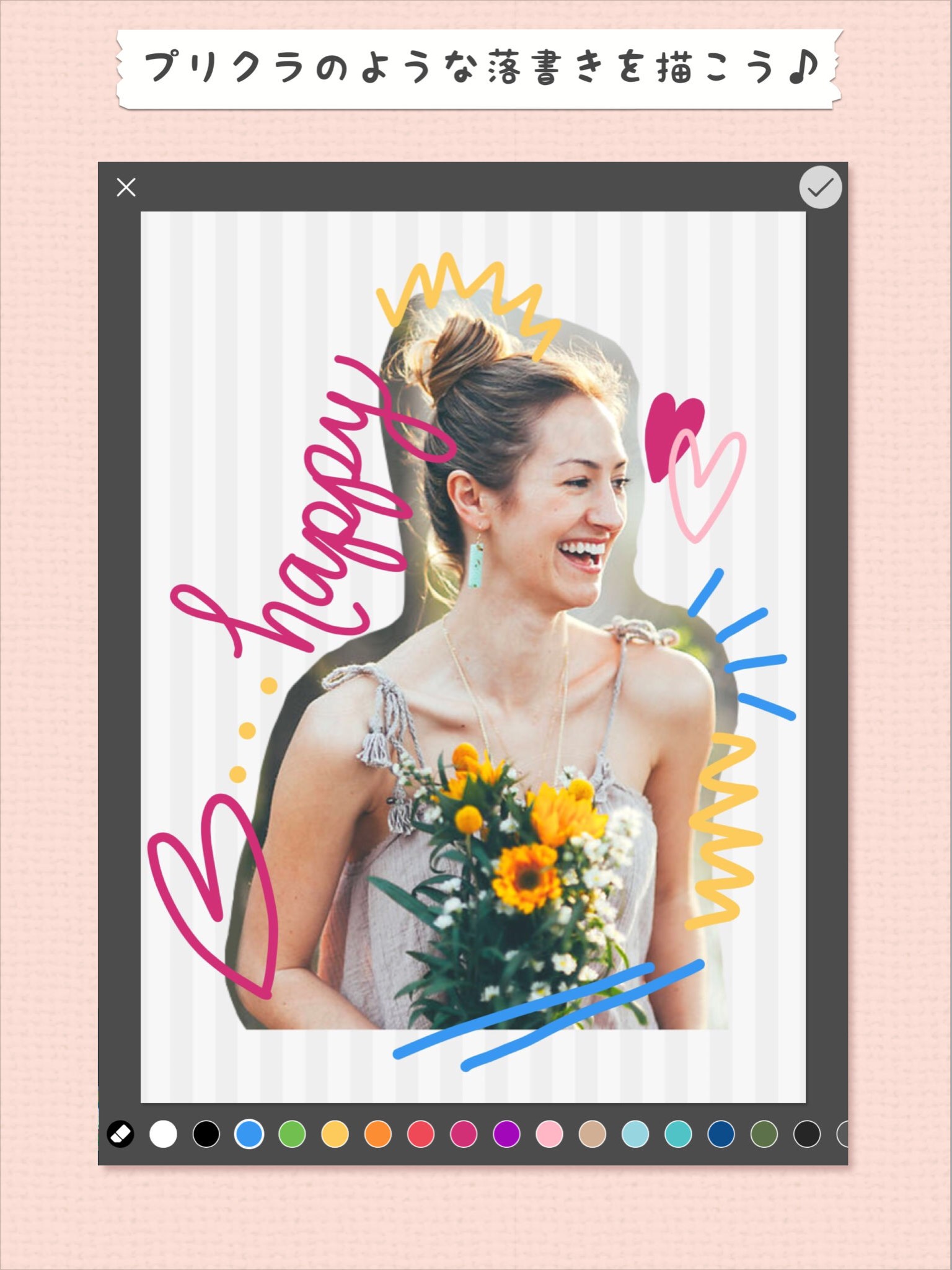 カラー豊富に落書きができます。プリクラ感覚でかわいく落書きしましょう。