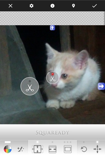 ② 子猫を画面のセンターに位置するようにスワイプします。