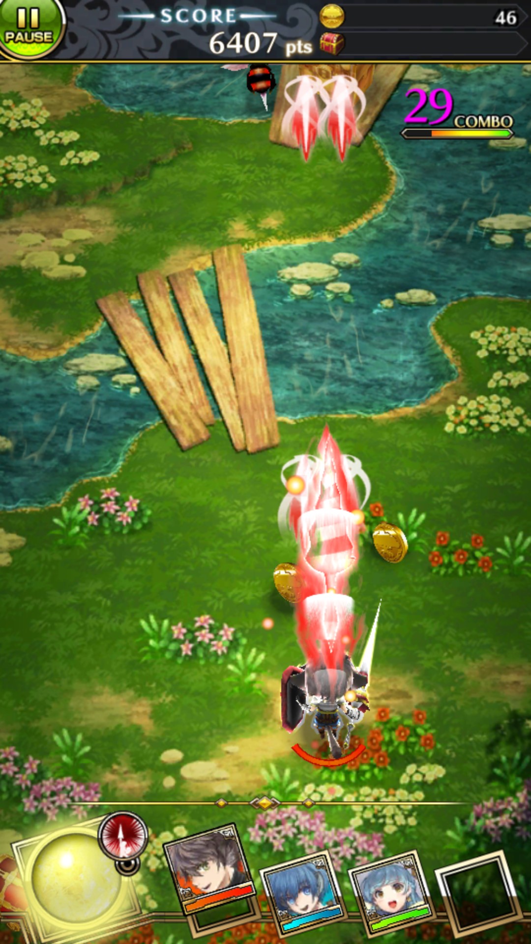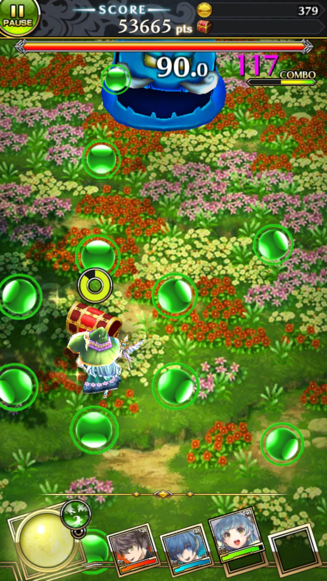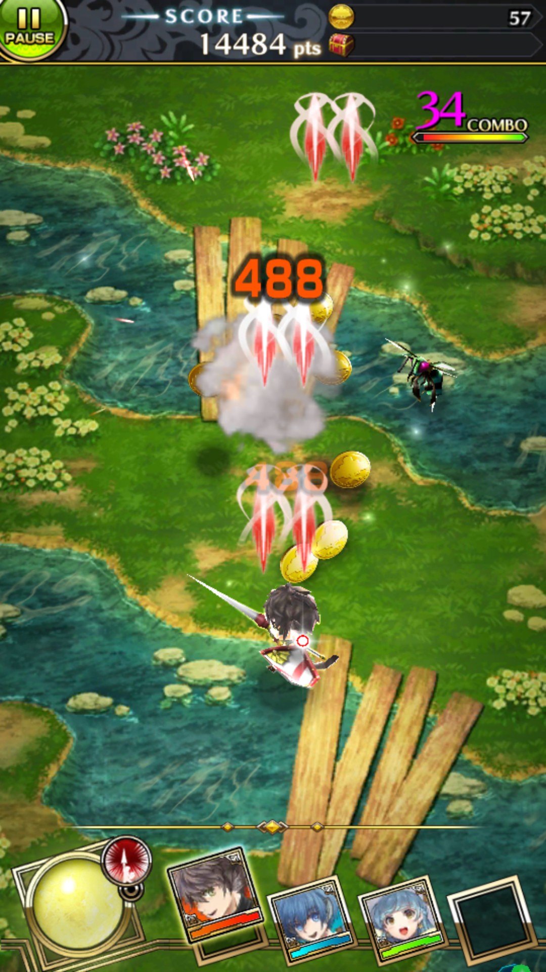 画面をスワイプさせて移動しながらショットとスキルを撃ち戦っていきます。