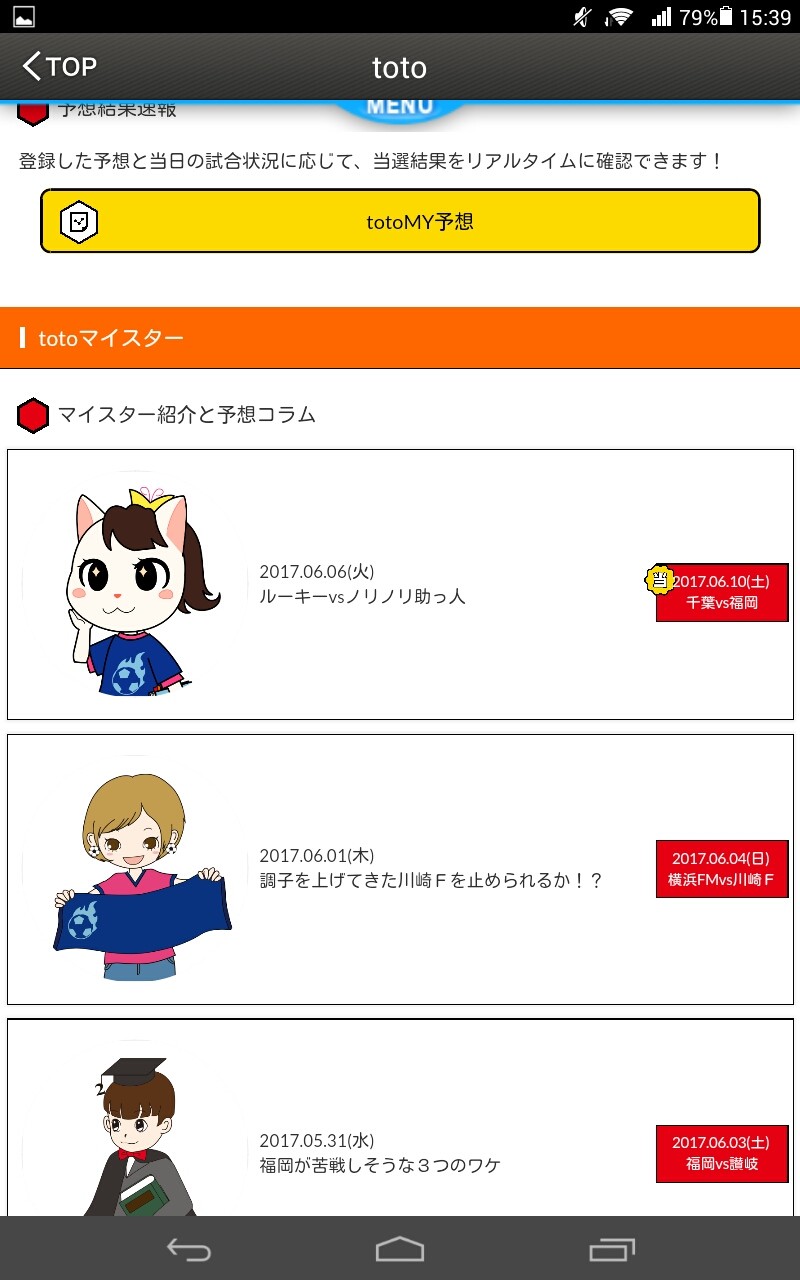サッカーに限らず、ニュース媒体は見やすさが重要です。余分な画像を少なくしたシンプルなに画面構成が人気です。このJリーグスタジアムはシンプルな構成で内容が充実しています。totoを購入している人なら、試合予想に活用してみてはどうでしょうか。totoのタグをクリックすると、「試合を予想しよう」と表示されます。Jリーグスタジアム独自のデータに基づいて傾向を見ることができます。実際に購入しなくてもアプリの中で予想することができます。だんだんと当たるようになって来たら、実際に購入を検討してもいいでしょう。リーグ別、クラブ別に整理されています。また、totoマイスターが予想コラムを掲載しています。もちろん、最終判断は自分でやらなければなりませんが、コラムを参考にしてみてもいいのです。記事として読むのも興味深いですね。どのような見方で予想をしているのかは非常に参考になります。全体を通してのことですが、画面が変わるたびにデータのローディングが発生するため、パワー不足の端末を使用している人はちょっと待ち遠しいかもしれません。最新のスマホに乗り換えたくなるでしょう。