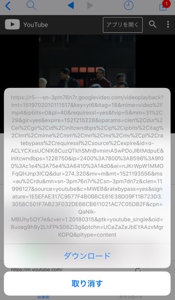 再生したい動画をタップすると動画が再生され、バックグラウンドで再生もできます。また、この画面の「↑↓」をタップすると、再生している動画をカメラロールに保存することができたり、プレイリストに追加することができます。