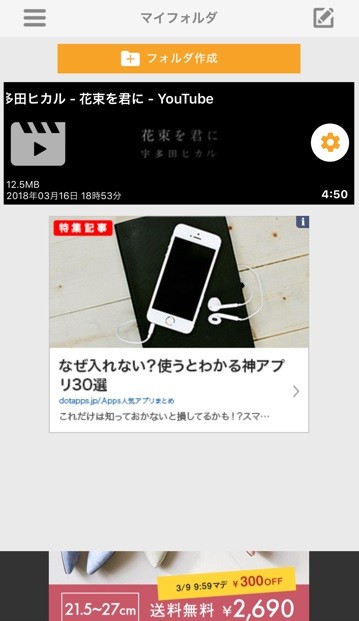 フォルダに保存した動画をタップすると、動画が再生されます。バックグラウンド再生機能はありませんが、動画のリピート再生や、連続再生機能などがあります。