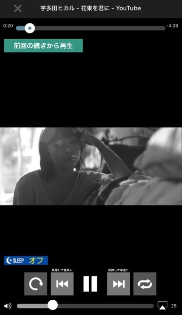 動画の繰り返しやリピート再生機能があり、動画の巻き戻しや早送り機能、バックグラウンド再生機能もあります。また、このアプリにはスリープ機能があり、再生タイマーを設定することができます。動画を見ながら、動画の音楽を聞きながら眠りに付きたいときにぴったりな機能ですね!