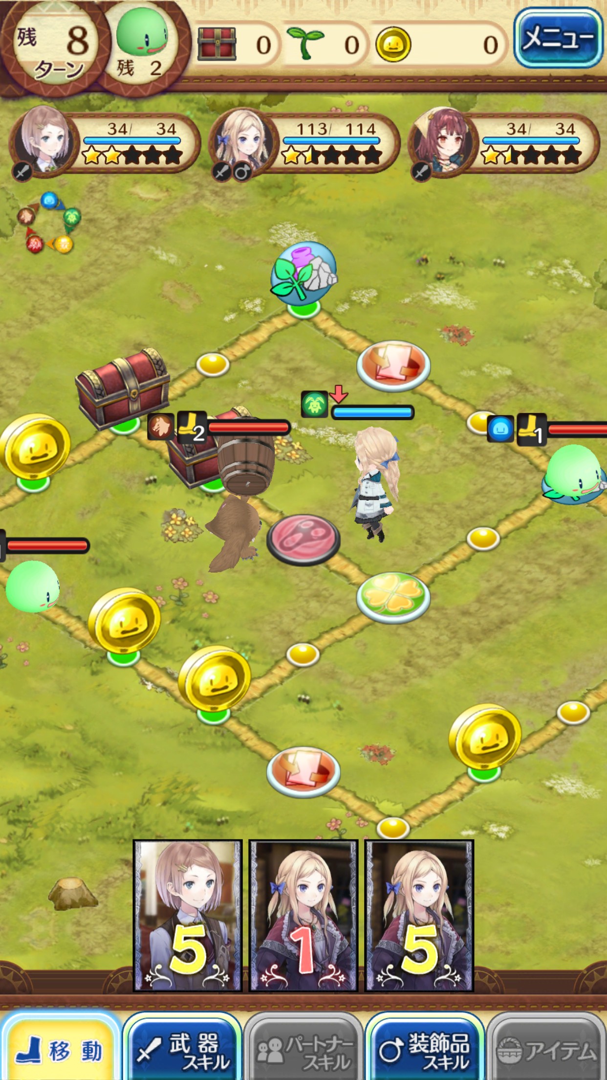 移動したマスごとに、ゴールド獲得、宝箱獲得、良い効果のあるマス、悪い効果のマスがあります。