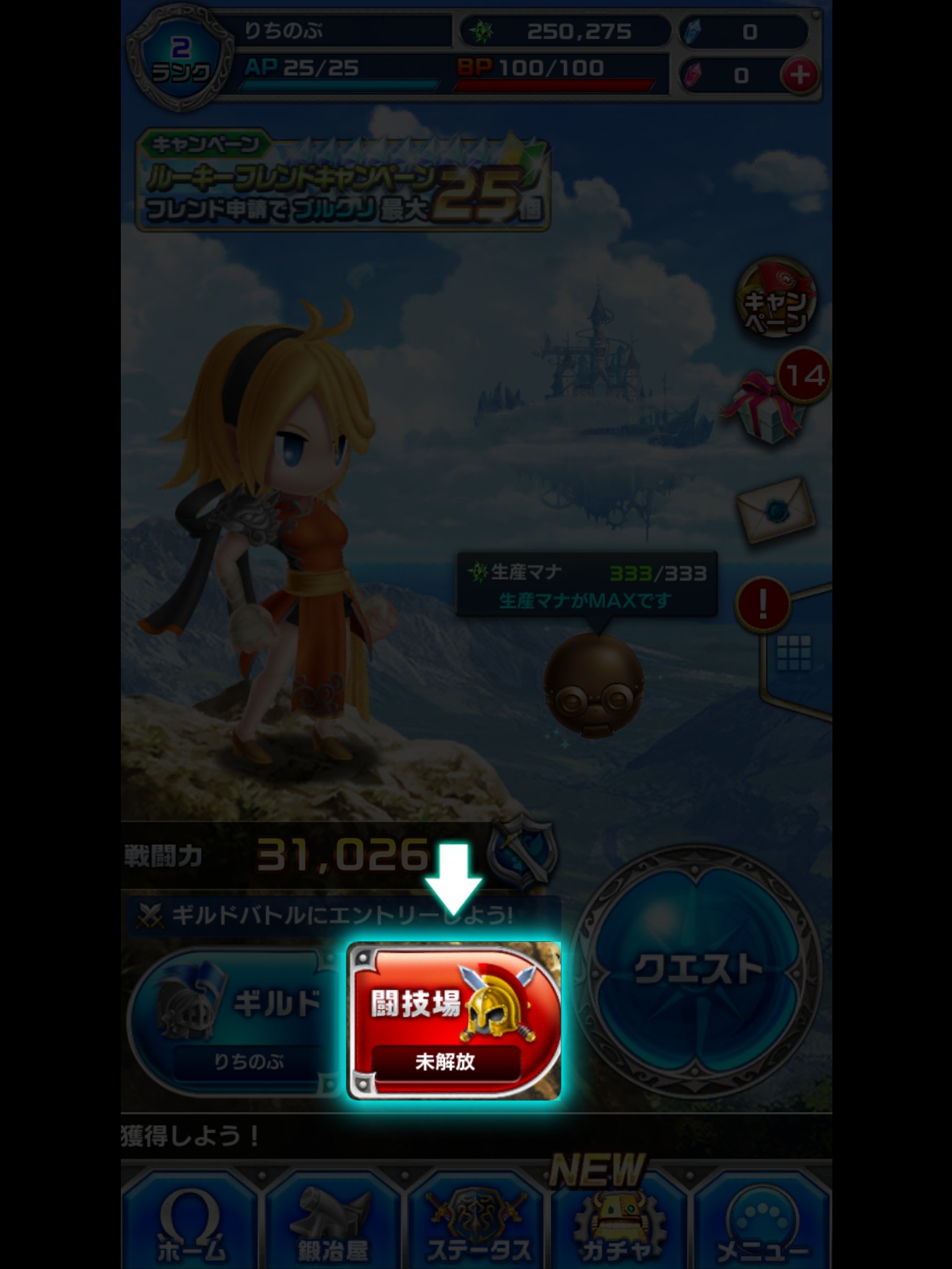 このゲームアプリはキャラクターを強化してギルドバトルを戦っていくのがメインコンテンツとなっています。