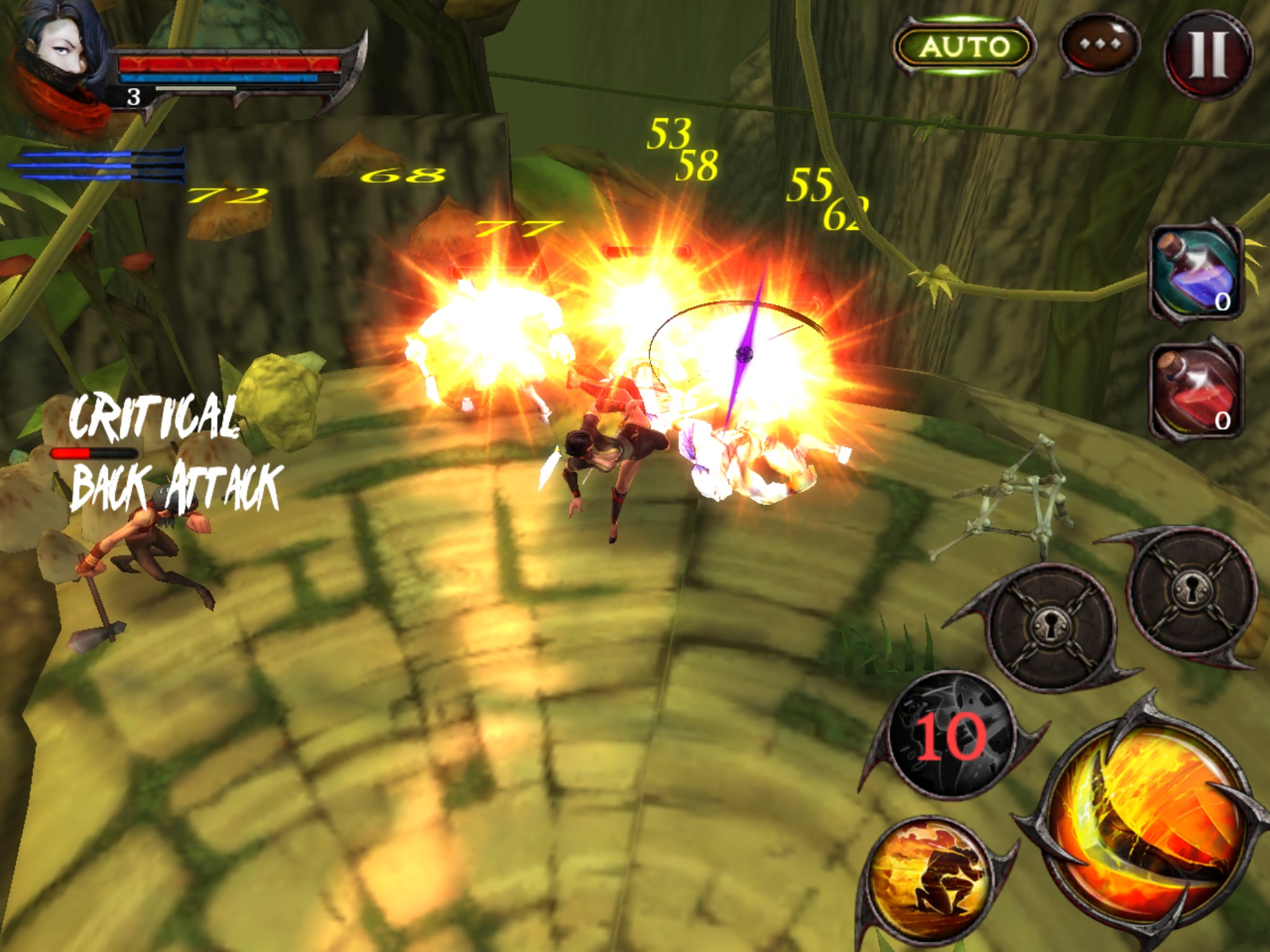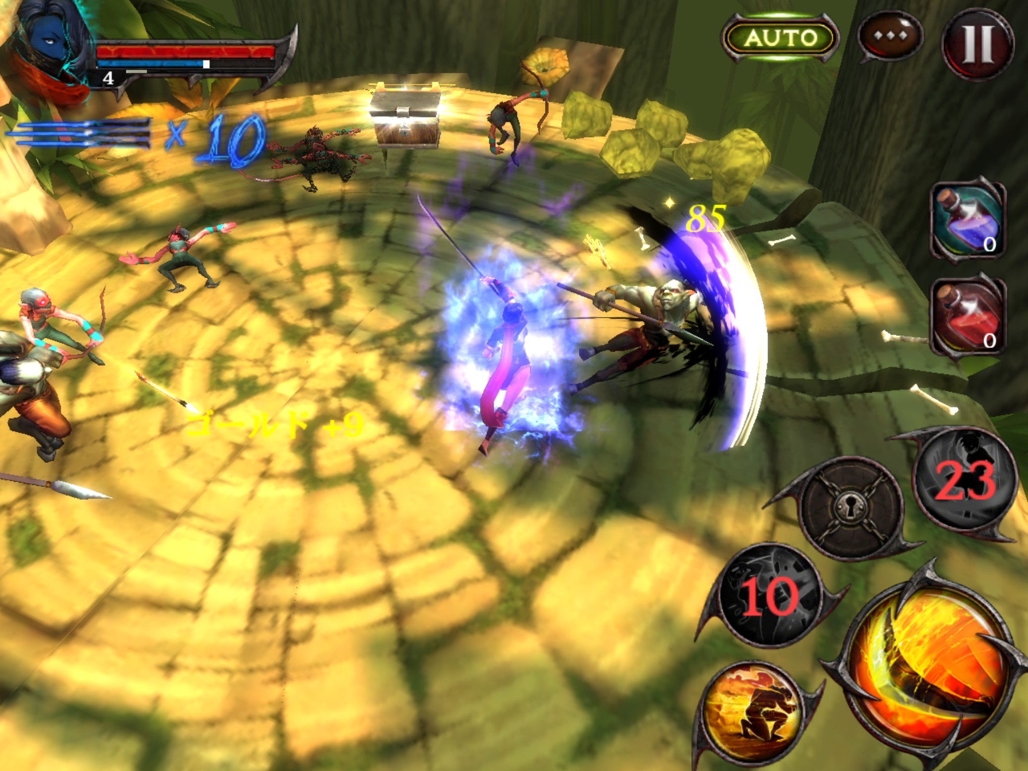 戦闘では、画面左下にあるバーチャルパッドでキャラを移動させ、画面右下にある攻撃・スキルボタンパレットを駆使して敵を倒します。