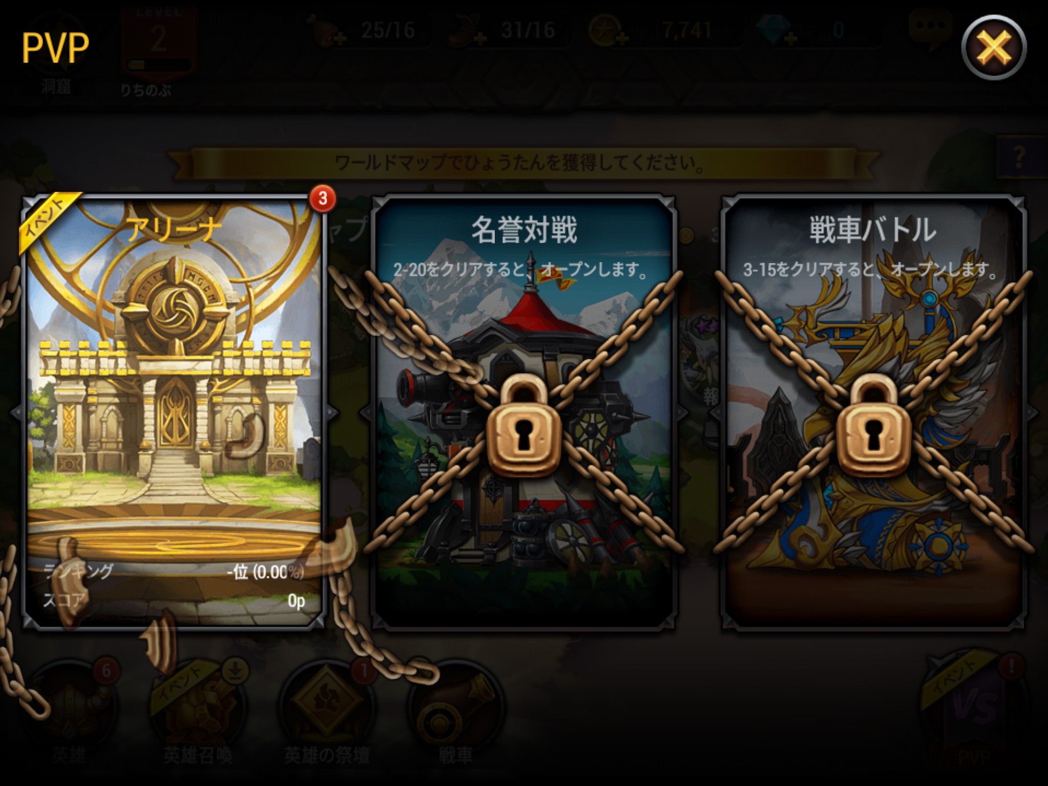 階層が分かれており、クリアしていくごとに報酬として「英雄の欠片」をもらえます。