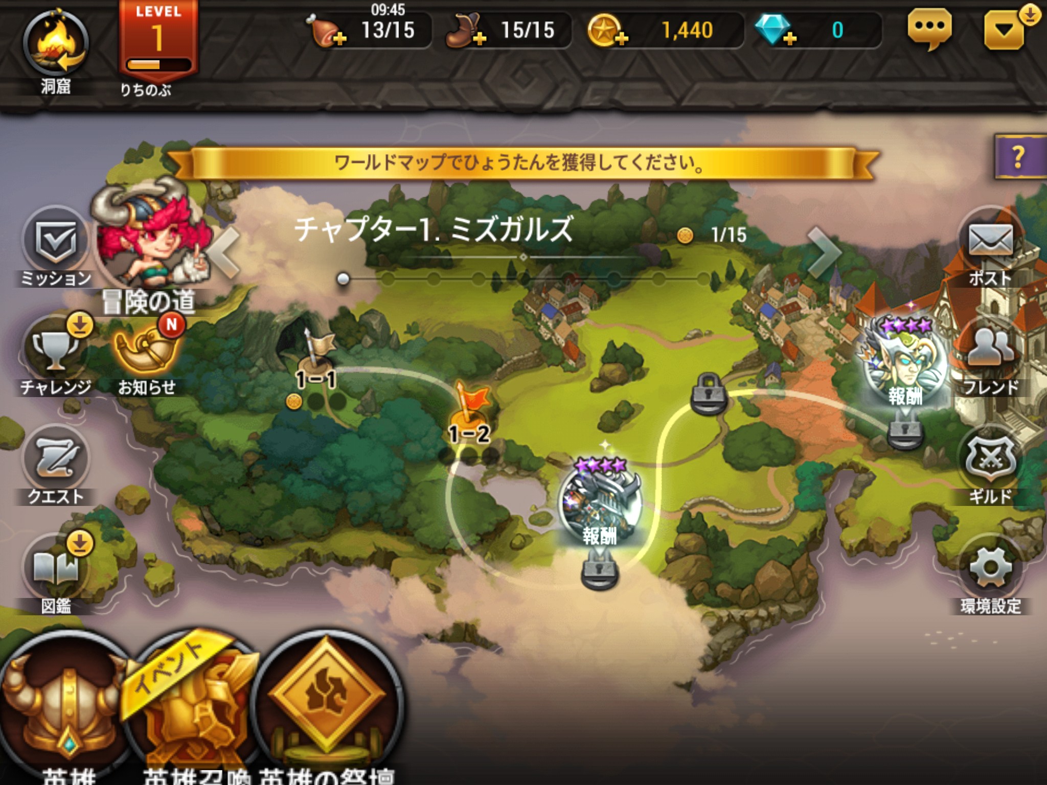 ワールドマップにある旗の付いたポイントをタップするとステージを選択できます。