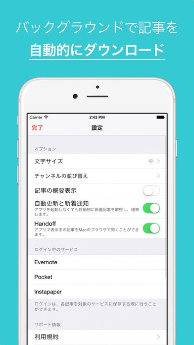 必要な情報・記事はクリップしておくか「Evernote」、「Pocket」、「Instapaper」に保存することも可能です。
