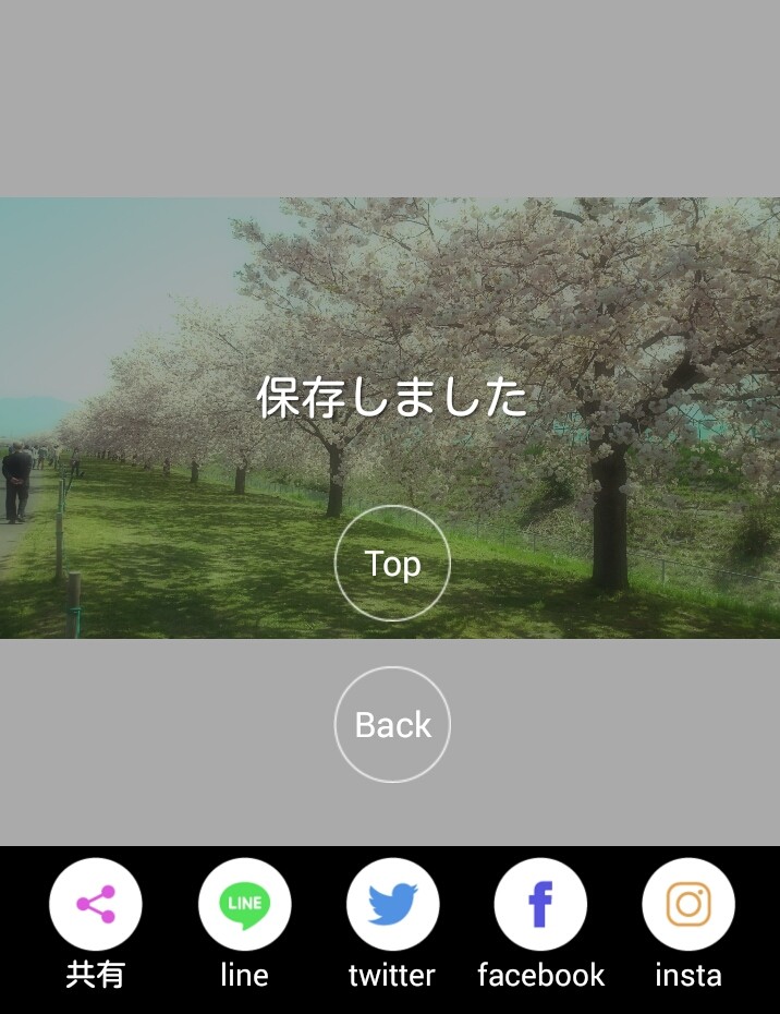 また、保存した写真をそのままLINEやTwitterで共有することもできます。