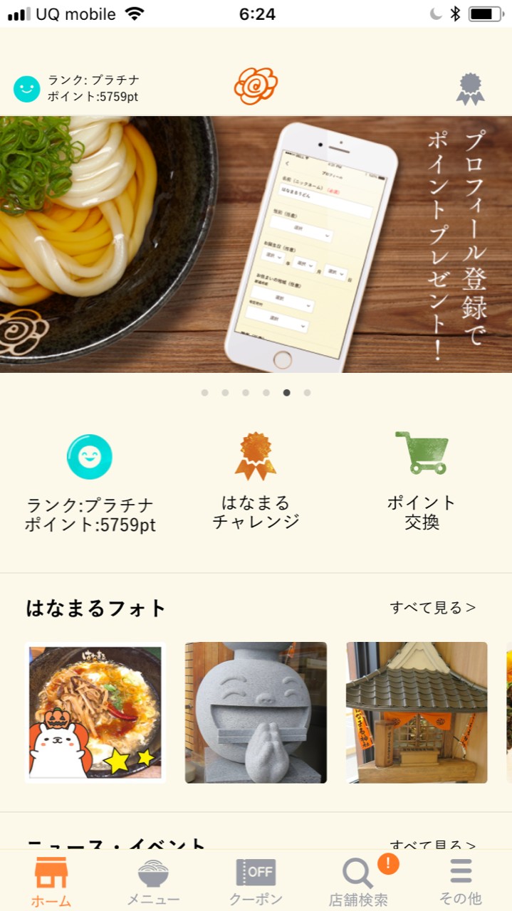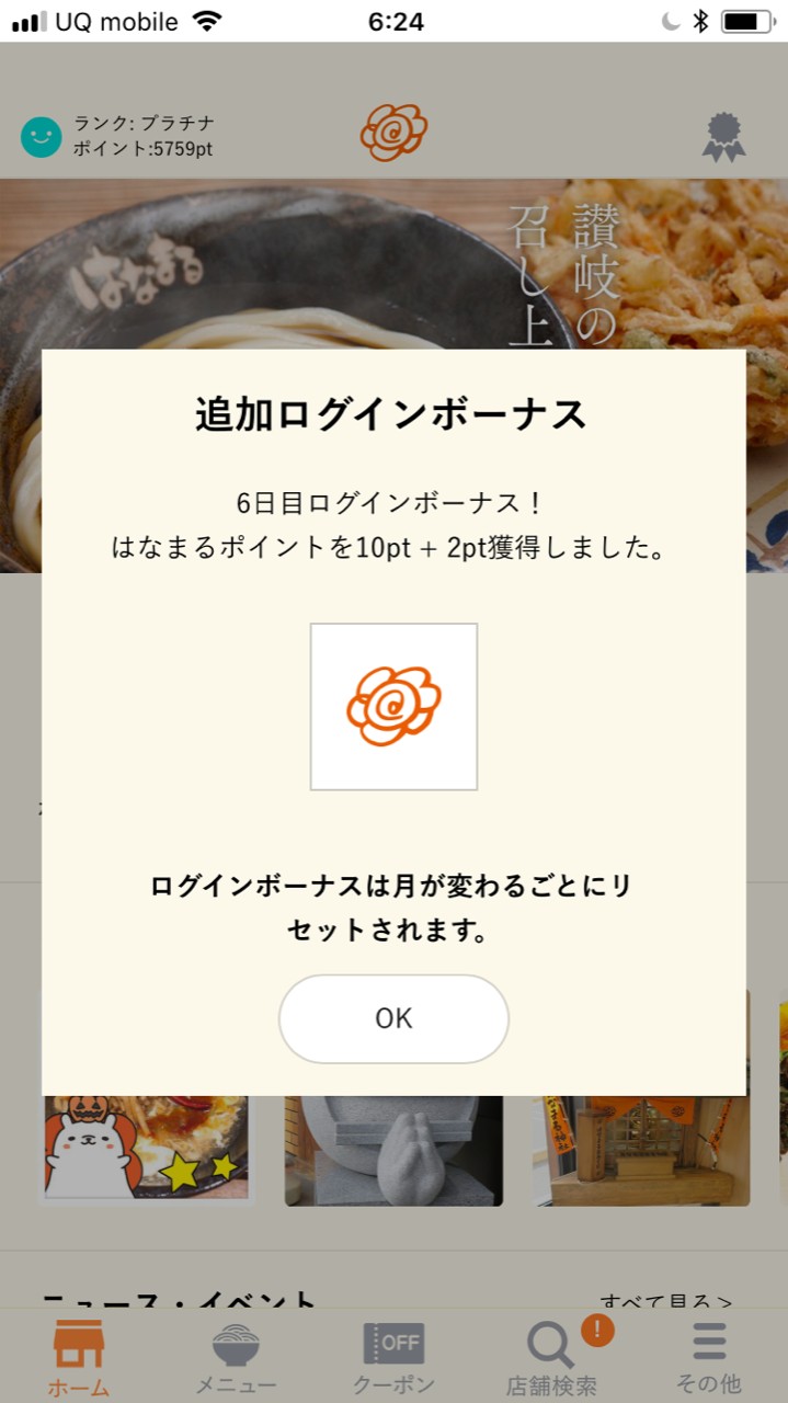 ポイントゲットで豪華なクーポンがもらえる「はなまるうどん」アプリ