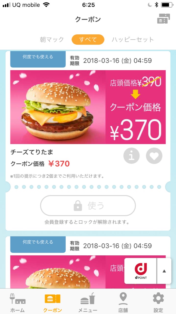 朝マック・ランチ・カフェなど、さまざまな時間帯に合わせてクーポンが揃っているので、いつ来店しても、何かしらのクーポンを使うことができます。