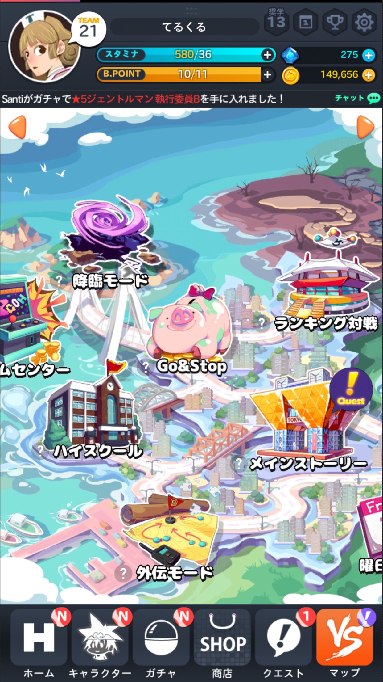 ゴッドオブハイスクールの物語を進めながら、クエストをクリアしていきます。