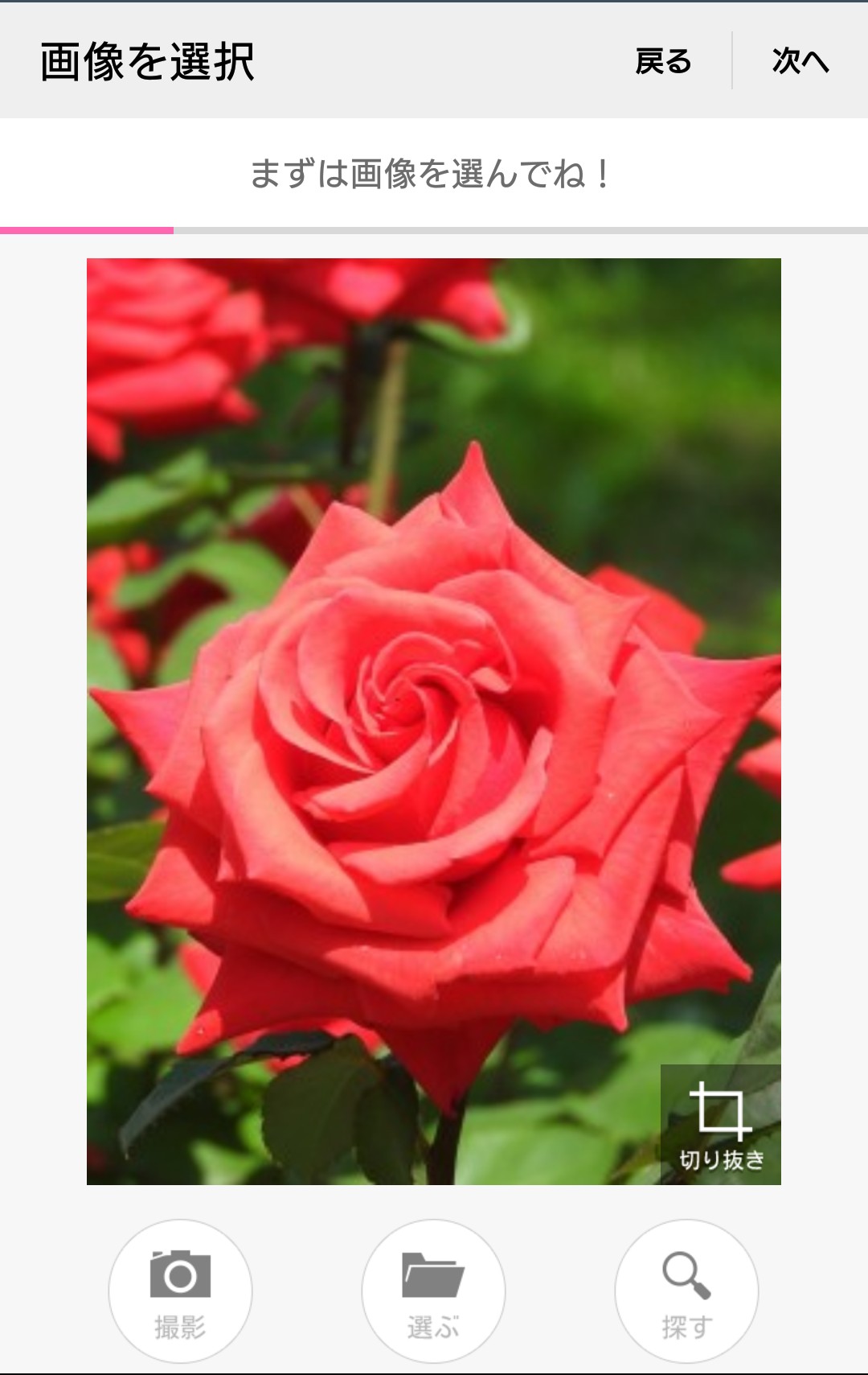 選んだ画像に要らない部分があったら、「切り抜き」してください(任意)。