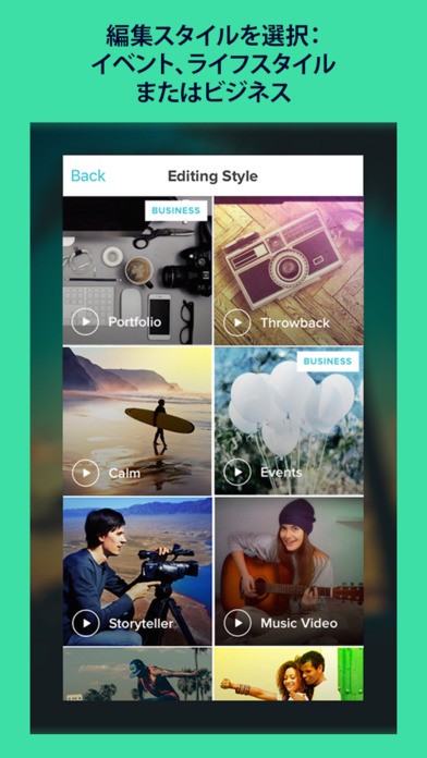 「Magisto」のアプリ、編集スタイルの説明キャプションが日本語にすべて翻訳されていない、英語のままのものも混ざっています。