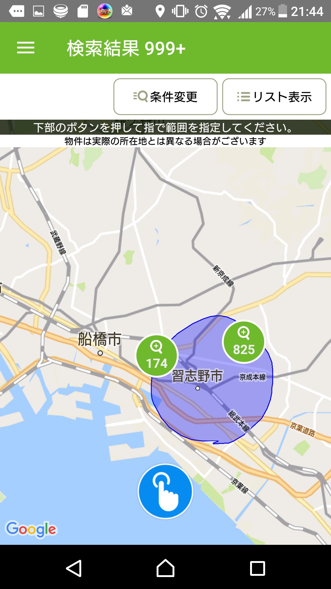 そうすると、その丸の中にある物件を検索してくれるという便利な機能です。