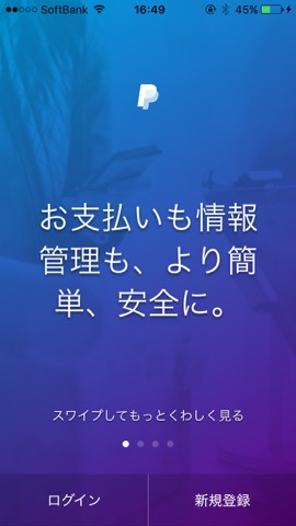 既に「PayPal」ご利用中の方は【ログイン】を、初めてご利用になる方は【新規登録】をタップしましょう。