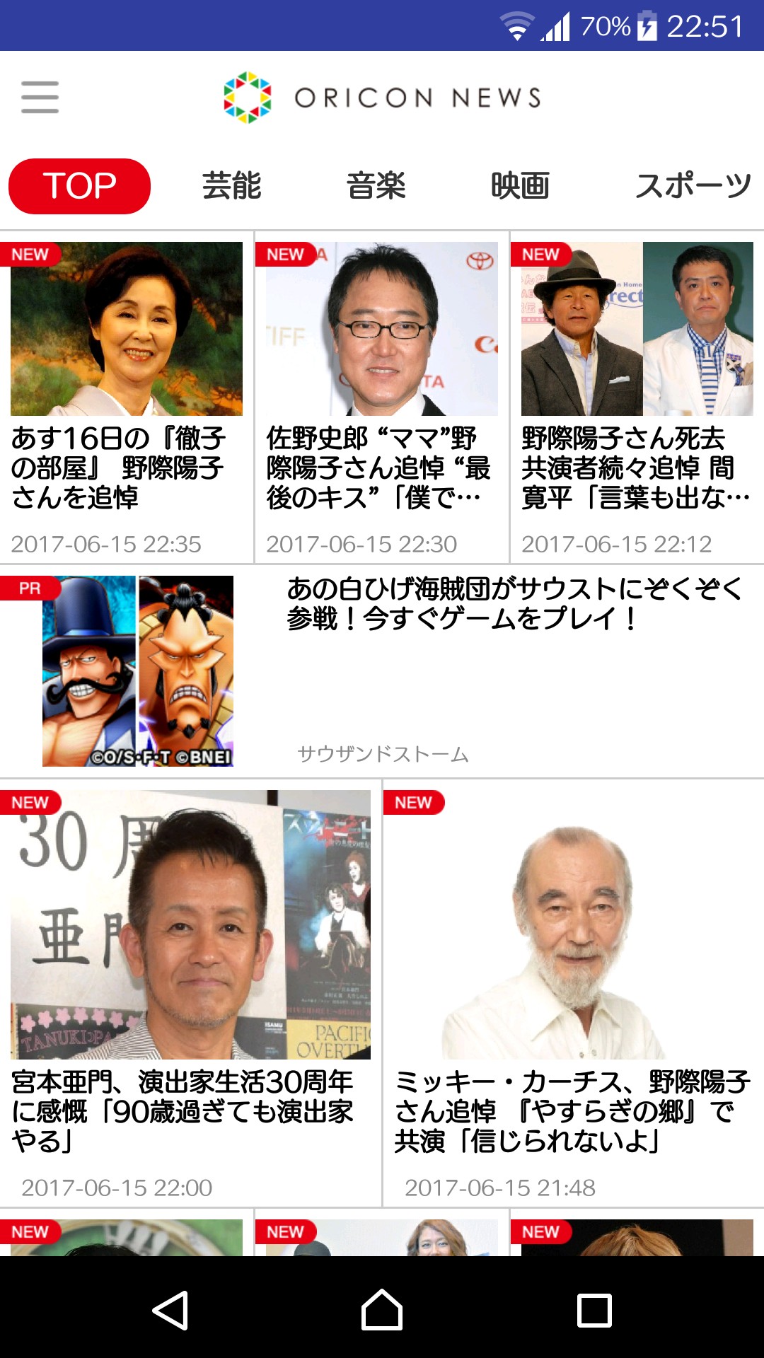 株式会社oricon ME運営のこのアプリは、「オリコン芸能ニュース」というアプリが新しくなったニュースアプリ。
