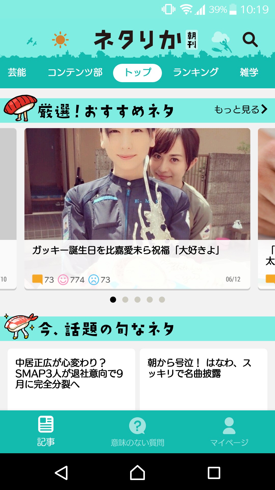 お寿司屋さんがモチーフになっている「ネタりか」ではアプリ内のところどころにお寿司が出てきたり、記事に写真がついていない代わりに「写真ないので寿司置いときますね」というユーモア溢れる画像が用意されていたり、ニュース記事を見る以外にも楽しさがあります。また、ニュース記事に関するユーザーのコメントも投稿されていて、「いいね」「どうでもいいね」の評価で世間の声もチェックできます。