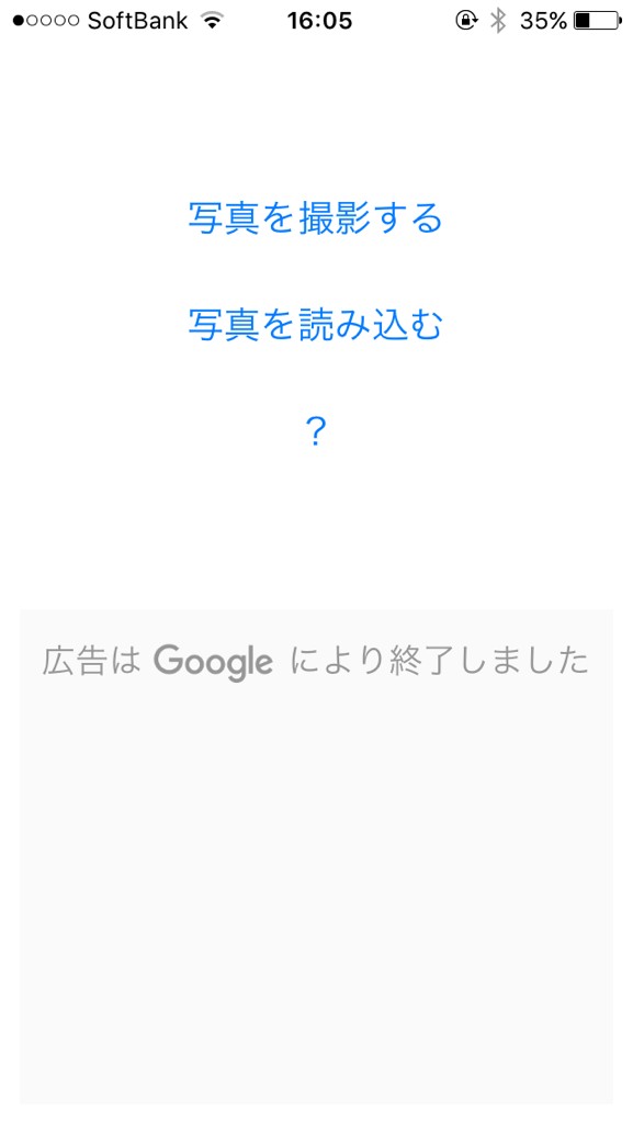 アプリを起動するとこちらのページが表示されます。登録作業は一切ありませんので、すぐにでも撮影・加工を始められます。