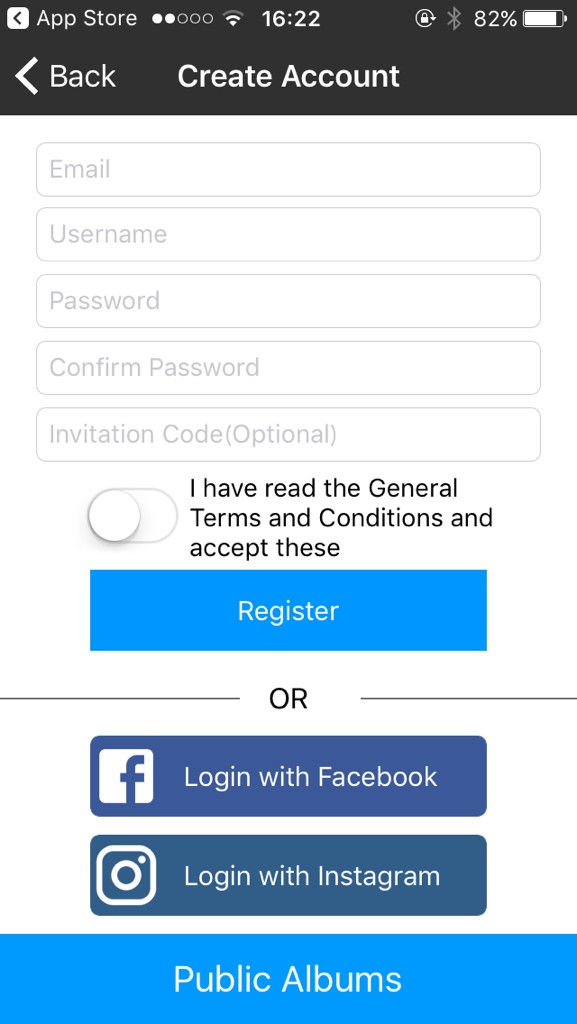 最後に利用規約に同意して「Register」をタップして完了です。「Instagram」「Facebook」アカウントをお持ちの場合は会員登録の必要なく、そのままログインできます。